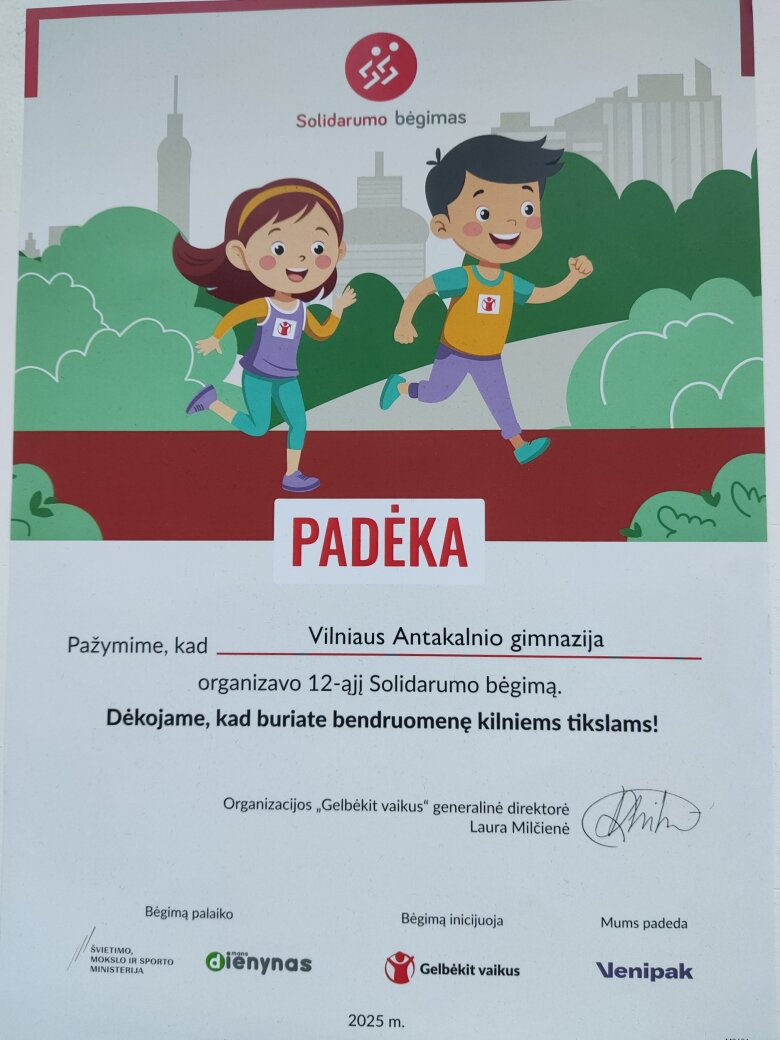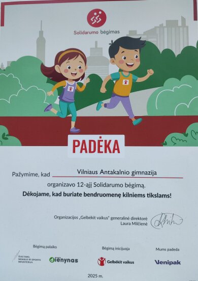 Antakalnio gimnazijos Ih ir If klasės šią savaitę dalyvavo tradiciniame kasmetiniame 12-ame Solidarumo bėgime. Bėgome dėl bendrystės, solidarumo, paramos ir pagalbos silpnesniems, stiprindami emocinę bei fizinę sveikatą. Džiaugiamės, kad kartu pavyko paaukoti „Gelbėkit vaikus“ fondui, padedančiam nepasiturintiems vaikams.