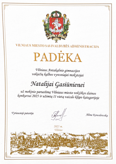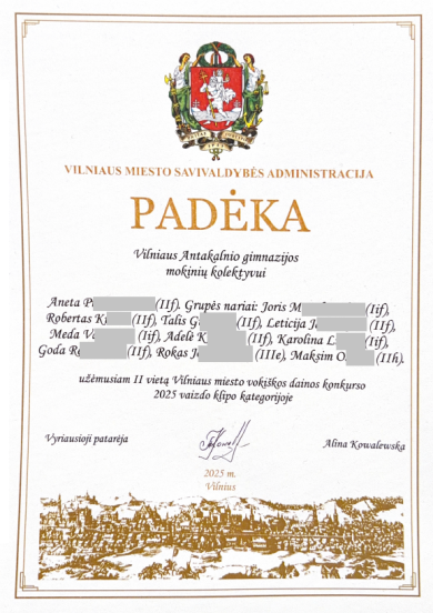 Padėka gimnazijai už dalyvavimą pilietinėje iniciatyvoje „T...
