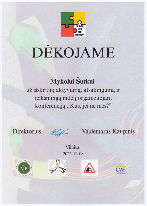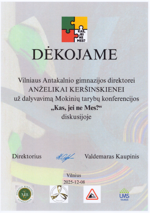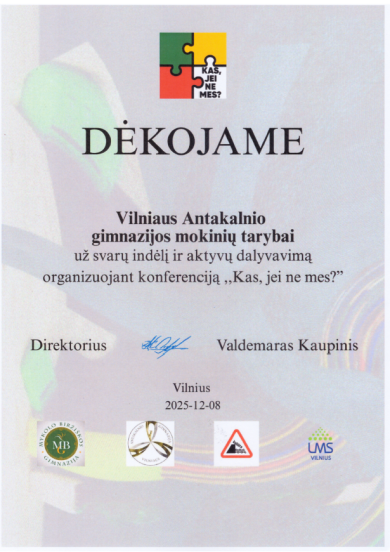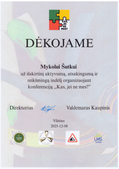 Padėkos už svarų indėlį organizuojant ir dalyvaujant konferencijoje „Kas, jei ne mes?“