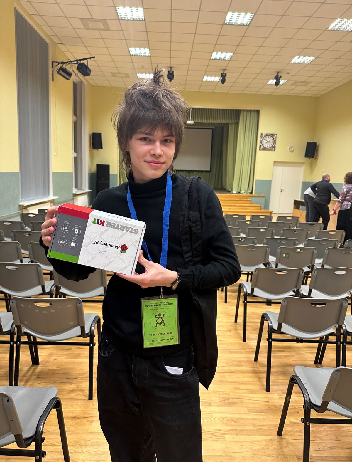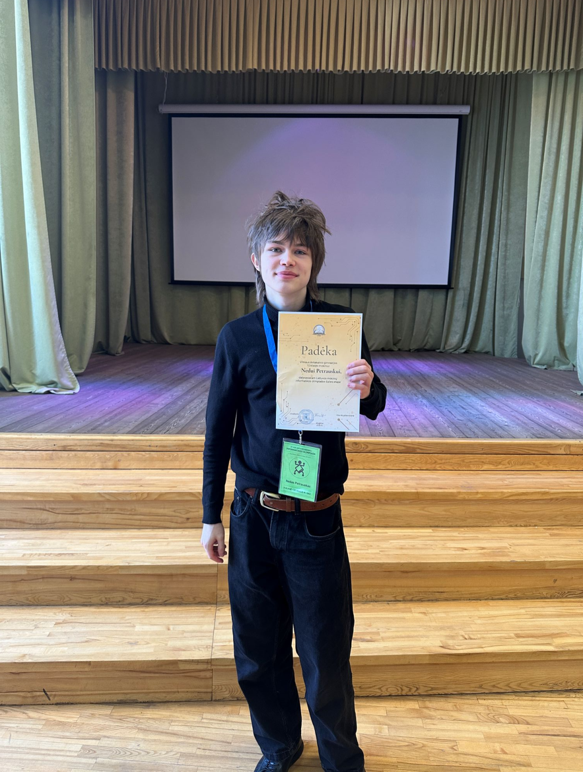 Antakalnio IIc klasės gimnazijos mokinys Nedas P. 2026 m. kovo 20–23 dienomis dalyvavo 37-ojoje Lietuvos mokinių informatikos olimpiadoje, vykusioje Anykščių Jono Biliūno gimnazijoje. Olimpiados metu mokinys dvi dienas po 5 valandas sprendė olimpiadinius uždavinius kompiuterių klasėse, dalyvavo I ir II dienos uždavinių sprendimų aptarimuose bei rezultatų ir apeliacijų veiklose. Jis taip pat dalyvavo „Humbility“ pristatyme aktų salėje, kur laimėjo „Kahoot“ rungtį ir buvo apdovanotas.
