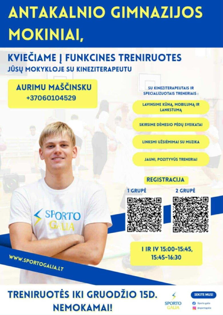 Primenu, kad Vilniaus Antakalnio gimnazija 2025 m. laimėjo Vilniaus miesto savivaldybės sporto projektų konkursą – gavome 2000 Eur nemokamoms fizinio pasirengimo ir mobilumo treniruotėms.