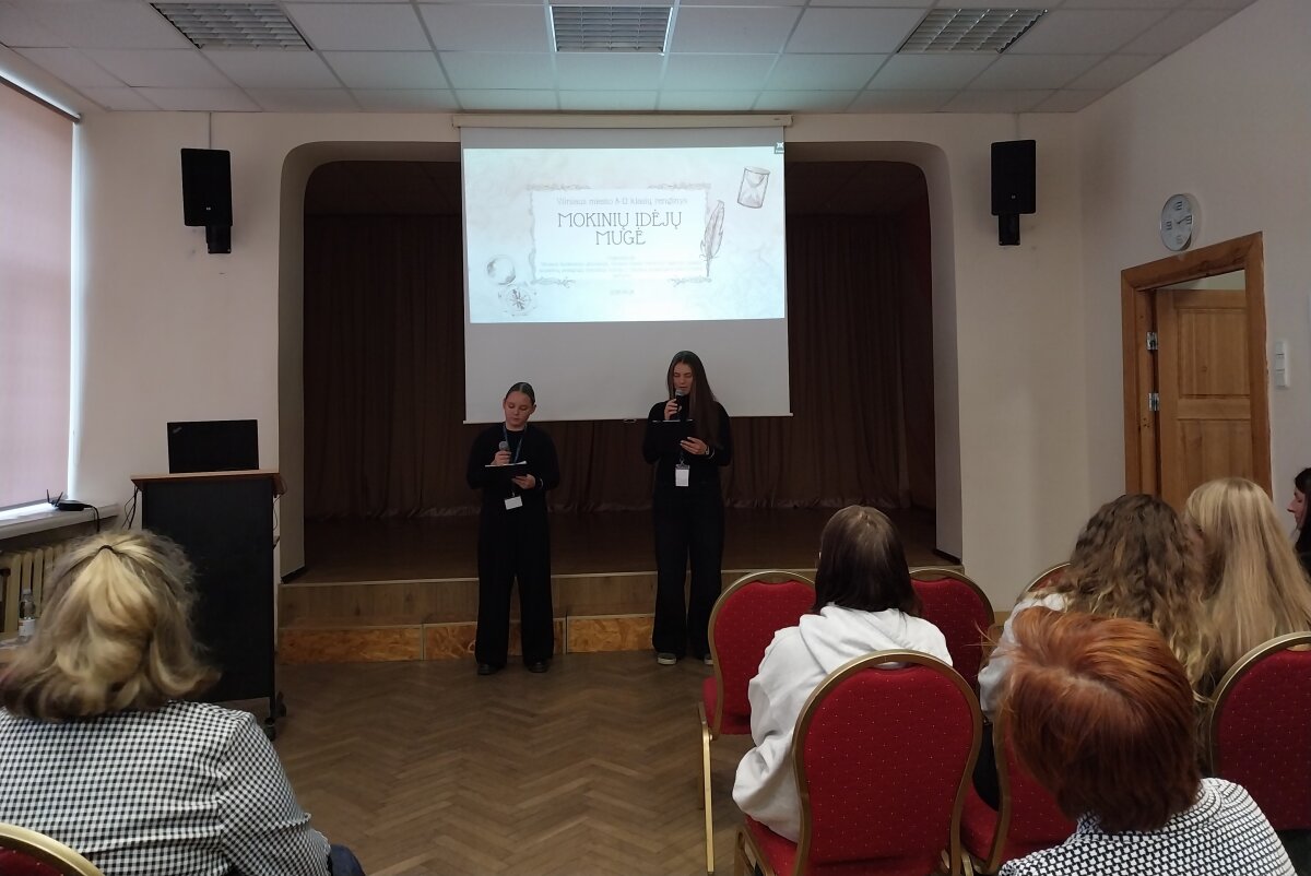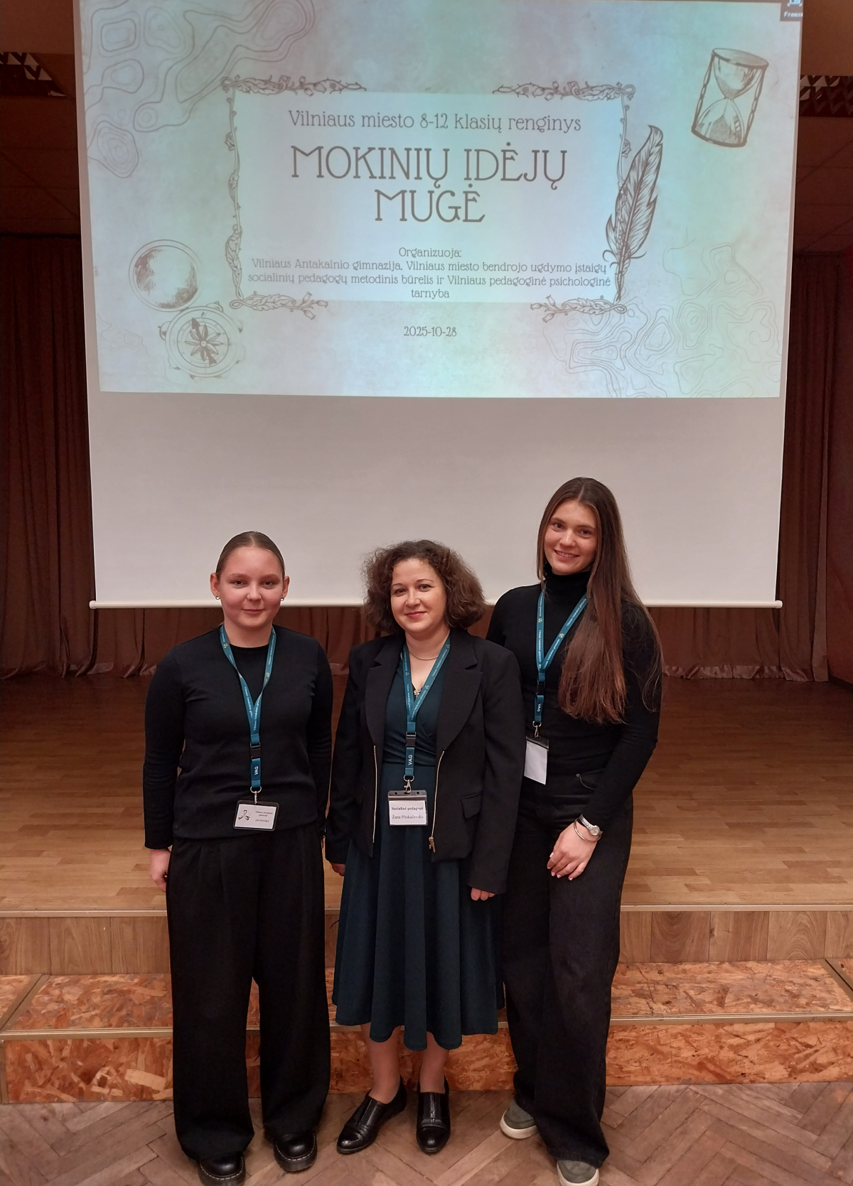 2025-10-28 Vilniaus Antakalnio gimnazijoje vyko renginys „Mokinių idėjų mugė“, kurio tikslas – skatinti Vilniaus miesto 8-12 klasių mokinius kartu su dalykų mokytojais, švietimo pagalbos specialistais ar klasių vadovais ieškoti naujų metodų, kurie suteiktų galimybę iš karto gauti grįžtamąjį ryšį apie mokinių įgytas dalykines žinias, loginį-matematinį mąstymą, kūrybiškumą, komandinį darbą.