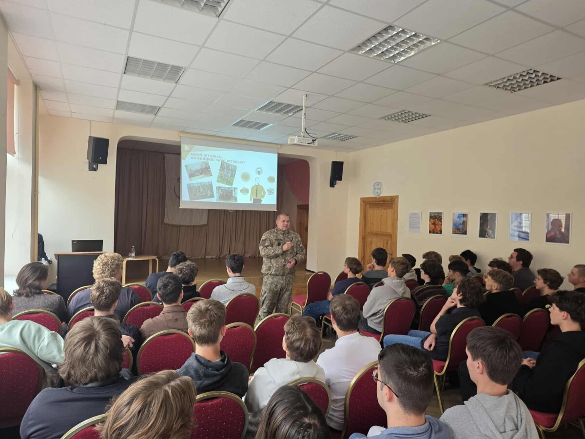 2025 m. spalio 15 d. (trečiadienį) gimnazijos Aktų salėje vyko profesinio informavimo paskaita tema „Privalomoji ir savanoriška karo tarnyba“.