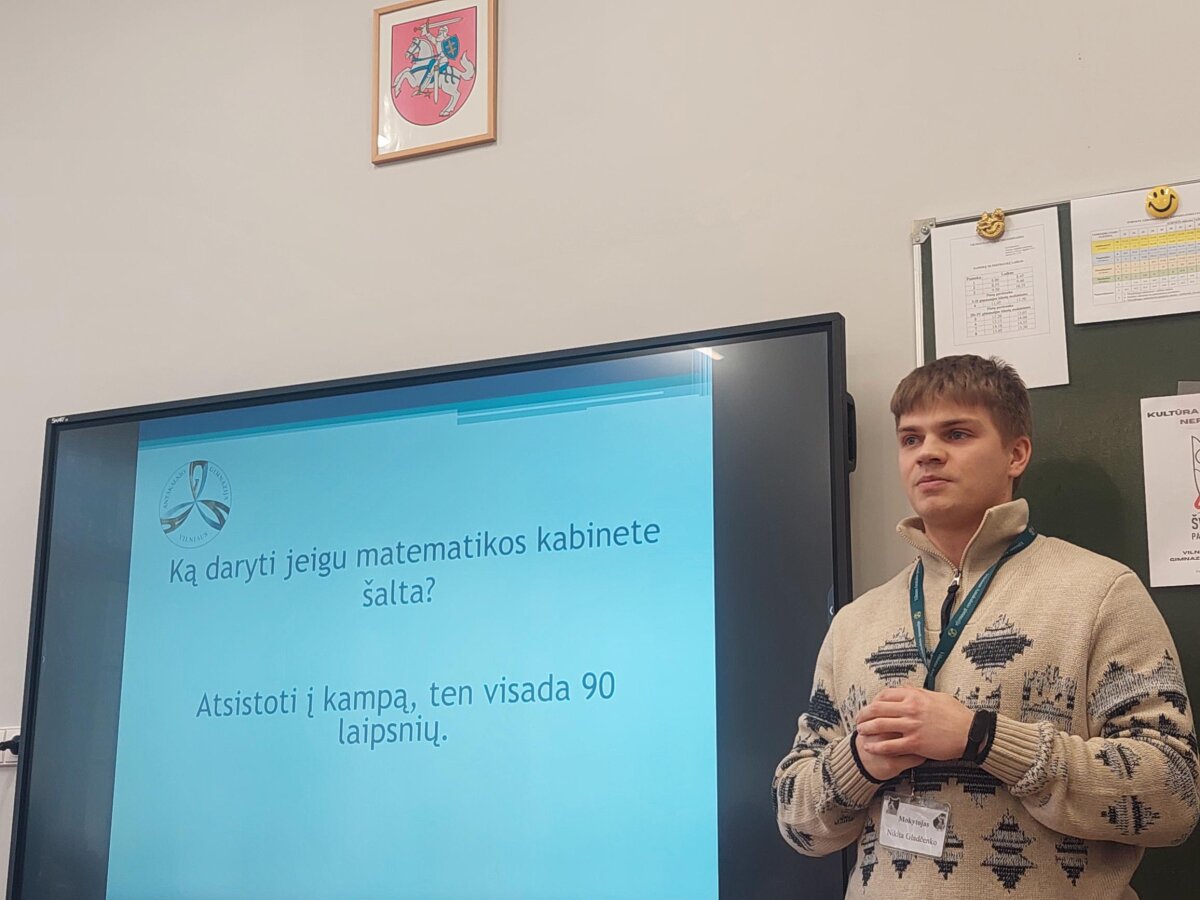 Mokykloje viešėjo VGTU dėstytojas Rokas Šimaitis
