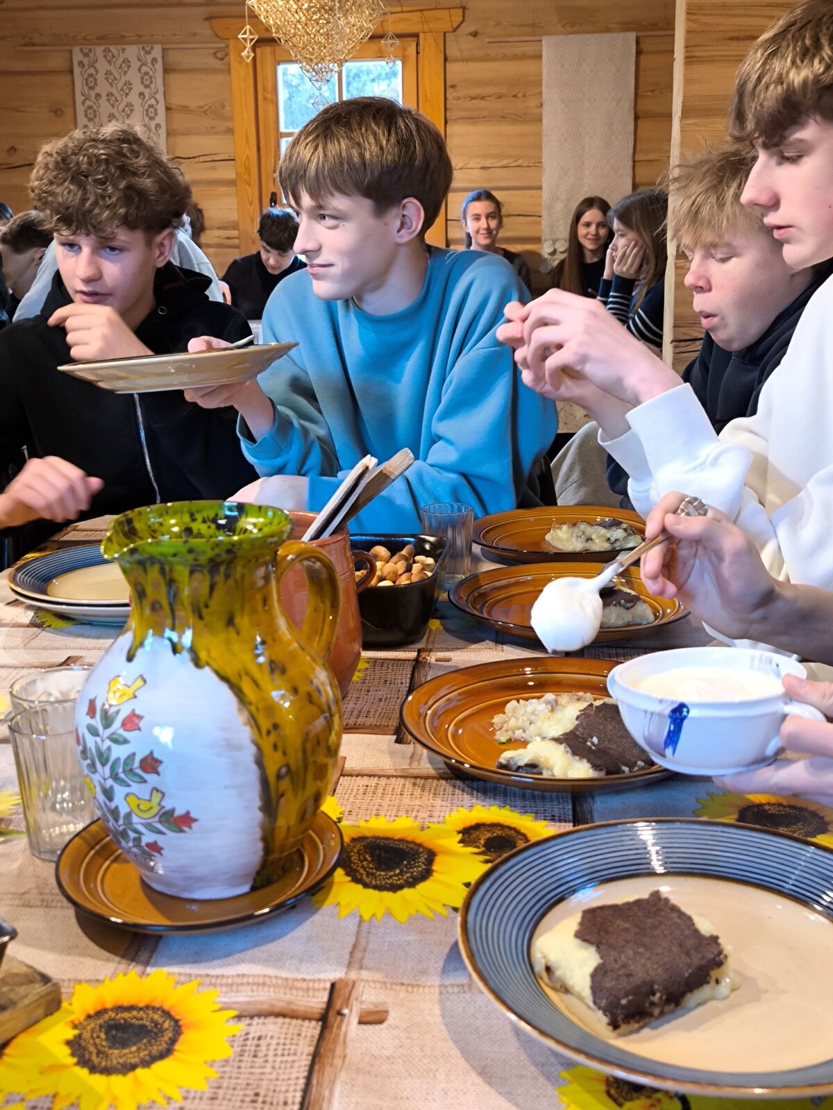 Gruodžio 23 dieną Ig ir Ih klasių gimnazistai paskutinę šių metų mokslo dieną prasmingai bei linksmai praleido Molėtų krašto etnografinėje sodyboje. Mokiniai buvo supažindinti su šio krašto žiemos laikotarpio kalendorinių švenčių šventimo tradicijomis, žaidimais, burtais bei patiekalais. Edukacijos metu gimnazistai gamino natūralaus vaško kalėdines dekoracijas, kūčiukus, kuriais, dar karštais, galėjo pasmaguriauti. O vėliau buvo pavaišinti krosnyje keptu, ypatingo skonio kugeliu.