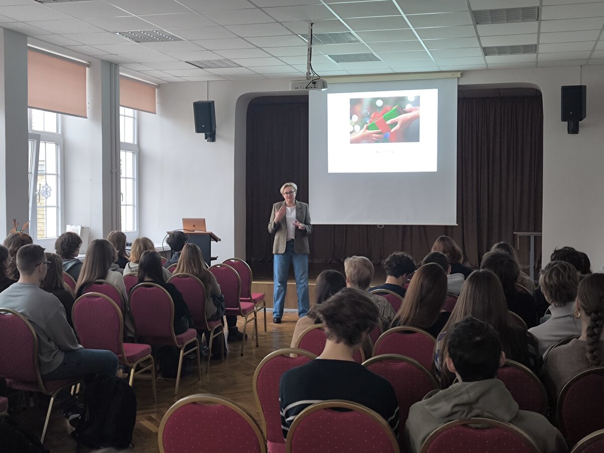 Gruodžio 22 dieną IIG klasių mokiniams vyko projekto lėšomis finansuota gydytojos dietologės Dainos Kaftanikienės paskaita apie sveiką mitybą. Lektorė turi ilgametę darbo patirtį dietologijos srityje, domisi paauglių sveikos mitybos problematika ir savo profesinėje praktikoje dažnai konsultuoja valgymo sutrikimų turinčius asmenis.