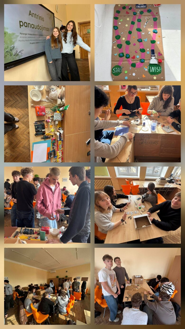 2026 m. kovo 23 d. organizuotose kūrybinėse dirbtuvėse mokiniai, naudodami antrines žaliavas (kartonines pakuotes), kūrė įvairius stalo žaidimus. Ši veikla skatino kūrybiškumą ir padėjo praktiškai suvokti antrinio panaudojimo svarbą. Sukurti žaidimai vėliau buvo eksponuojami II korpuso III aukšte, šalia Neoranžerijos žaliosios erdvės.