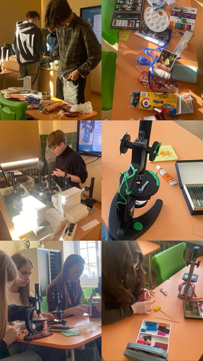 2026 m. kovo 9 d. vykusių dirbtuvių „Prikelk mikroskopą naujam gyvenimui“ metu mokiniai restauravo senus, nebenaudojamus mikroskopus: juos išvalė, suremontavo (pakeitė optines dalis), dekoravo ir paruošė praktiniam naudojimui. Atnaujinti prietaisai buvo eksponuojami gimnazijos erdvėse, skatinant bendruomenės susidomėjimą mokslu bei antrinio daiktų panaudojimo idėjomis.