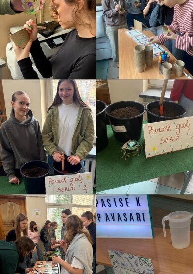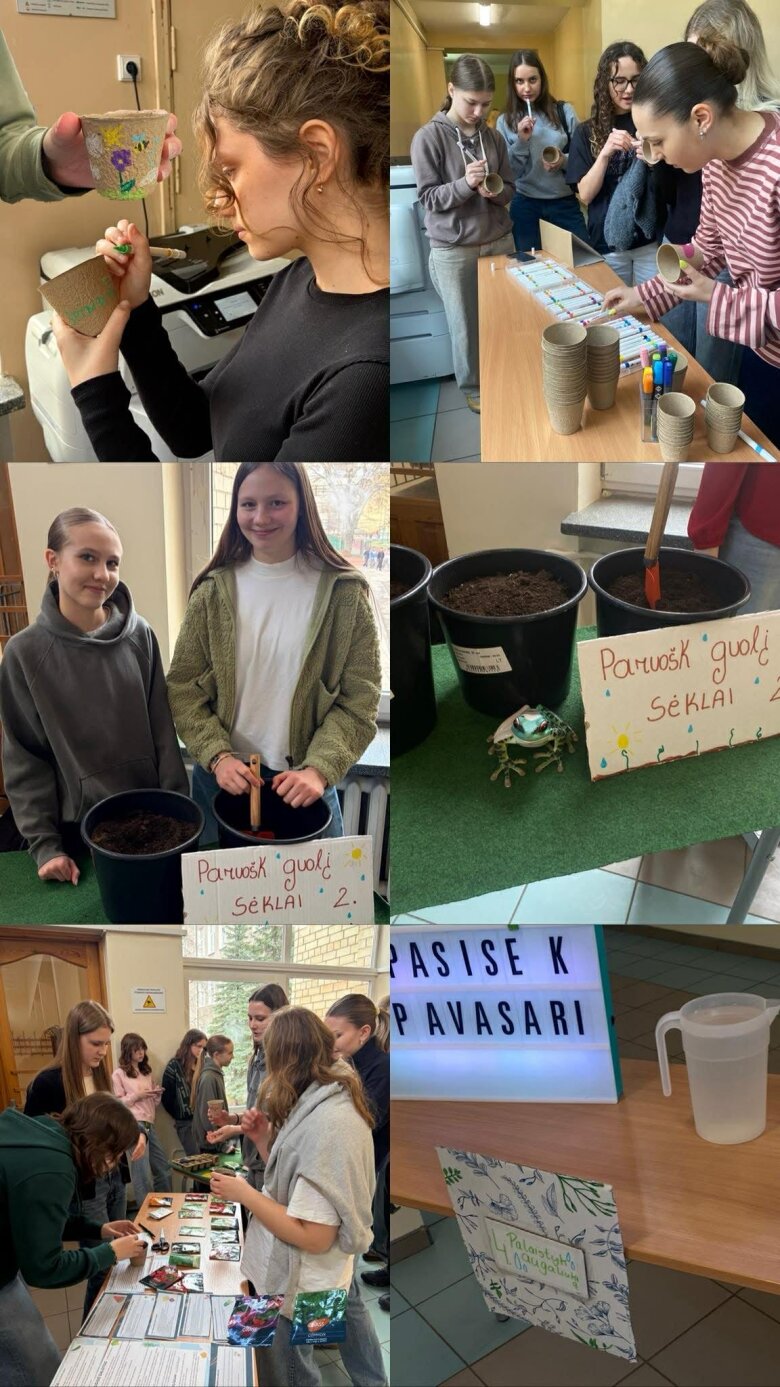 Tą pačią dieną įgyvendinta ir veikla „Pasisėk pavasarį“, kurios metu mokiniai dalyvavo praktinėse augalų sodinimo dirbtuvėse: dekoravo vazonėlius, sodino augalus ir susipažino su jų priežiūros principais. Šia veikla siekta skatinti domėjimąsi augalija ir ugdyti atsakomybę už gyvąją aplinką.