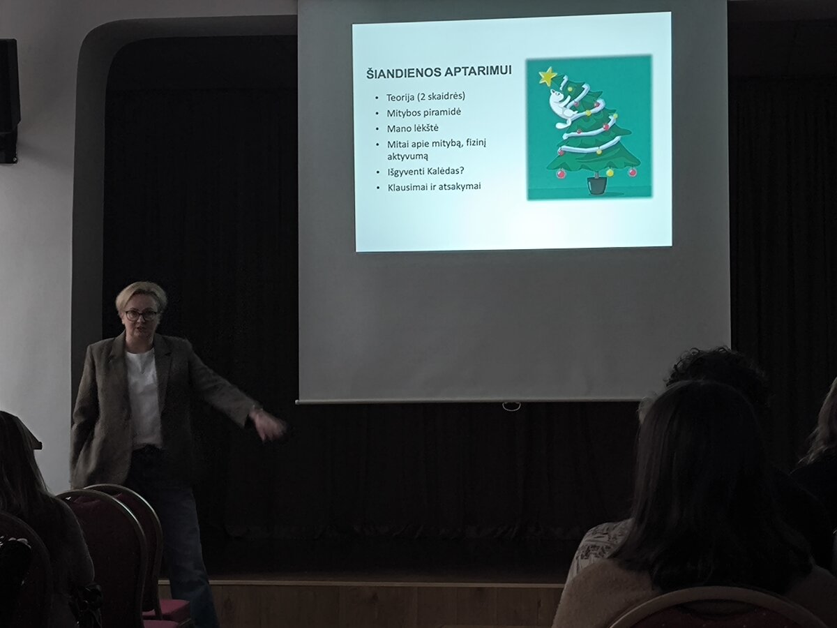 Gruodžio 22 dieną IIG klasių mokiniams vyko projekto lėšomis finansuotoje gydytojos dietologės Dainos Kaftanikienės paskaitoje apie sveiką mitybą gimnazistai buvo supažindinti su pagrindiniais sveikos mitybos principais, mitais apie dietas, kai kuriais maisto produktais ir valgymo ypatumais, taip pat sužinojo, kaip pasirinkti tinkamą maisto kiekį ir kokybę. Mokiniai lektorei uždavė jiems aktualius klausimus, į kuriuos sulaukė išsamių ir profesionalių atsakymų.